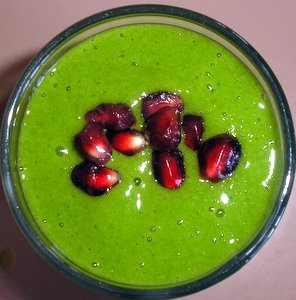 - este IDEAL sa consumam 500 de grame de verdeturi (adica o capitza intreaga de frunze) pe zi iar green smoothie este solutia ideala ca sa nu rumegam 3 ore la ditai ligheanu' cu salata :) In plus, verdeturile sunt mai greu de digerat (corpul s-a dezobisnuit sa le digere pentru ca nu le-am mai mancat de atata vreme) iar pulverizarea lor in blender le face mult mai usor de digerat si utilizat de catre corp.